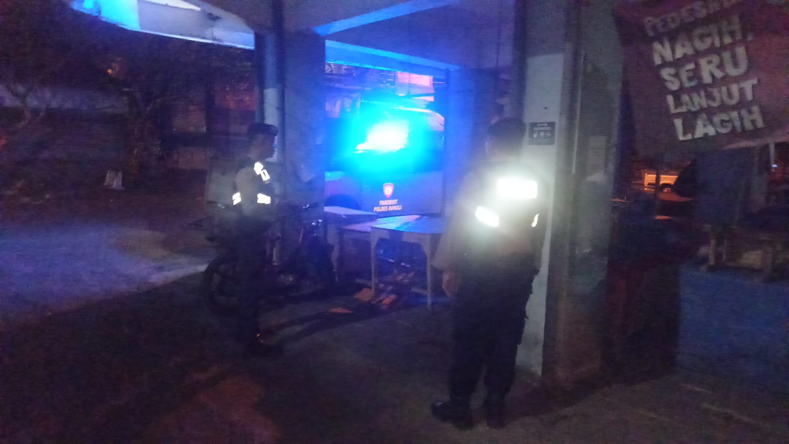 Antisipasi Gangguan Kamtibmas Pada Malam Hari, Personil Samapta Polres Bangli Lakukan Patroli Malam di Areal Pertokoan Pasar Kidul Bangli.