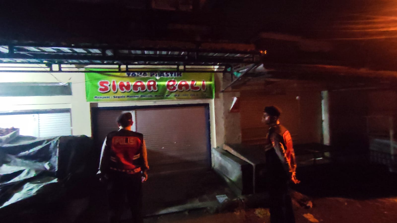 Antisipasi Gangguan Kamtibmas Pada Malam Hari, Personil Samapta Polres Bangli Lakukan Patroli Malam di Areal Pertokoan Pasar Kidul Bangli.