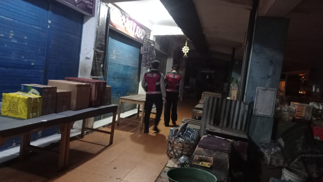 Antisipasi Gangguan Kamtibmas Pada Malam Hari, Personil Samapta Polres Bangli Lakukan Patroli Malam di Areal Pertokoan Pasar Kidul Bangli.