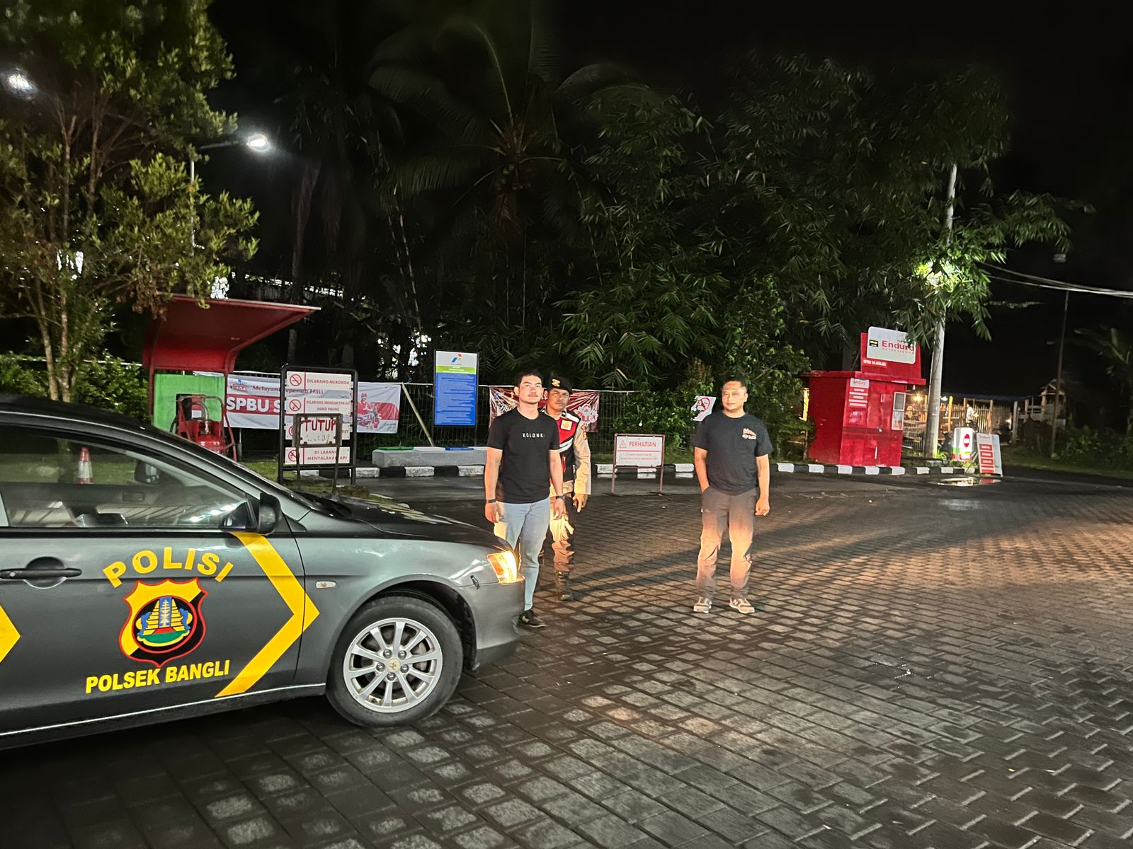 Blue Light Patrol guna antisipasi kegiatan masyarakat di malam hari, Kemudian pawas bersama anggota menyambangi Tempat Ibadah, Obvit SPBU, Pemukiman penduduk dan Pasar Kidul Bangli serta tempat keramaian Warga lainnya.