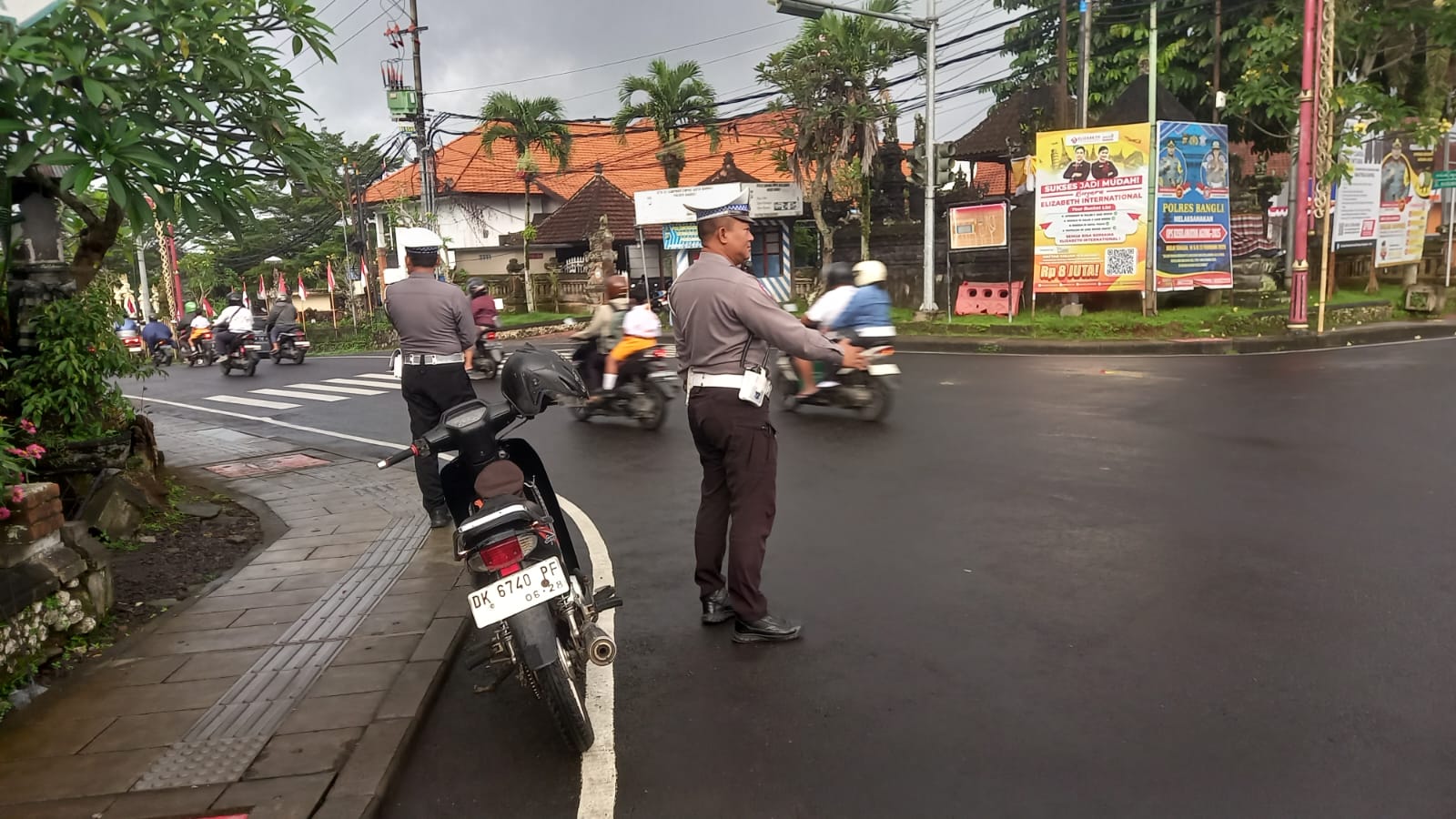 "Dari simpang empat kantor Pos sampai sepanjang Jl. Nusantara Bangli cukup padat mengingat banyak pertokoan, sekolah-sekolah sehingga aktifitas masyarakat di pagi hari cukup ramai, untuk antisipasi terjadinya kemacetan arus lalu lintas bahkan menghindari terjadinya laka lantas personil Polsek Bangli diploting untuk melaksanakan PG pagi, "ujar Kompol I Dewa Made Suryatmaja, S.H.,M.H.