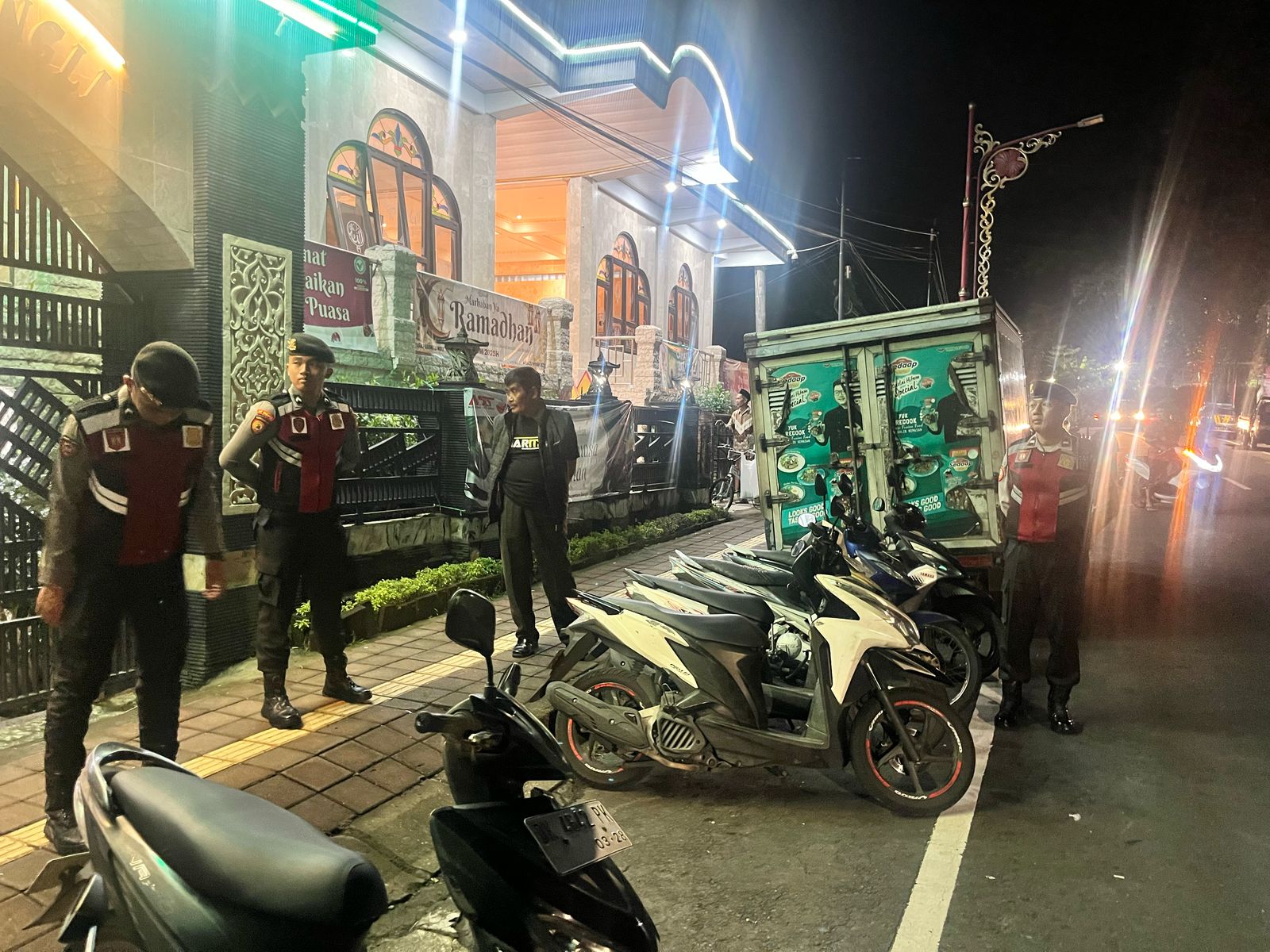 Blue Light Patrol guna antisipasi kegiatan masyarakat di malam hari, Kemudian pawas bersama anggota Sambangi Pasar Kidul, Tempat Ibadah Masjid Agung Bangli, Pemukiman Penduduk, Obvit Perbankan dan tempat keramaian Warga lainnya.