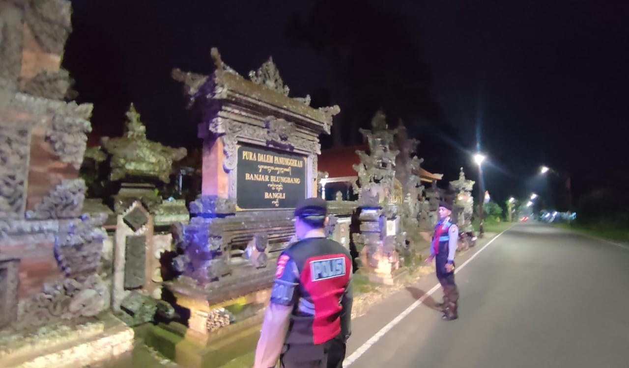Menjaga Situasi Tetap Kondusi Pada Malam Hari, Sat Samapta Polres Bangli Sambangi Tempat Suci Pura Kehen, Kec. Bangli