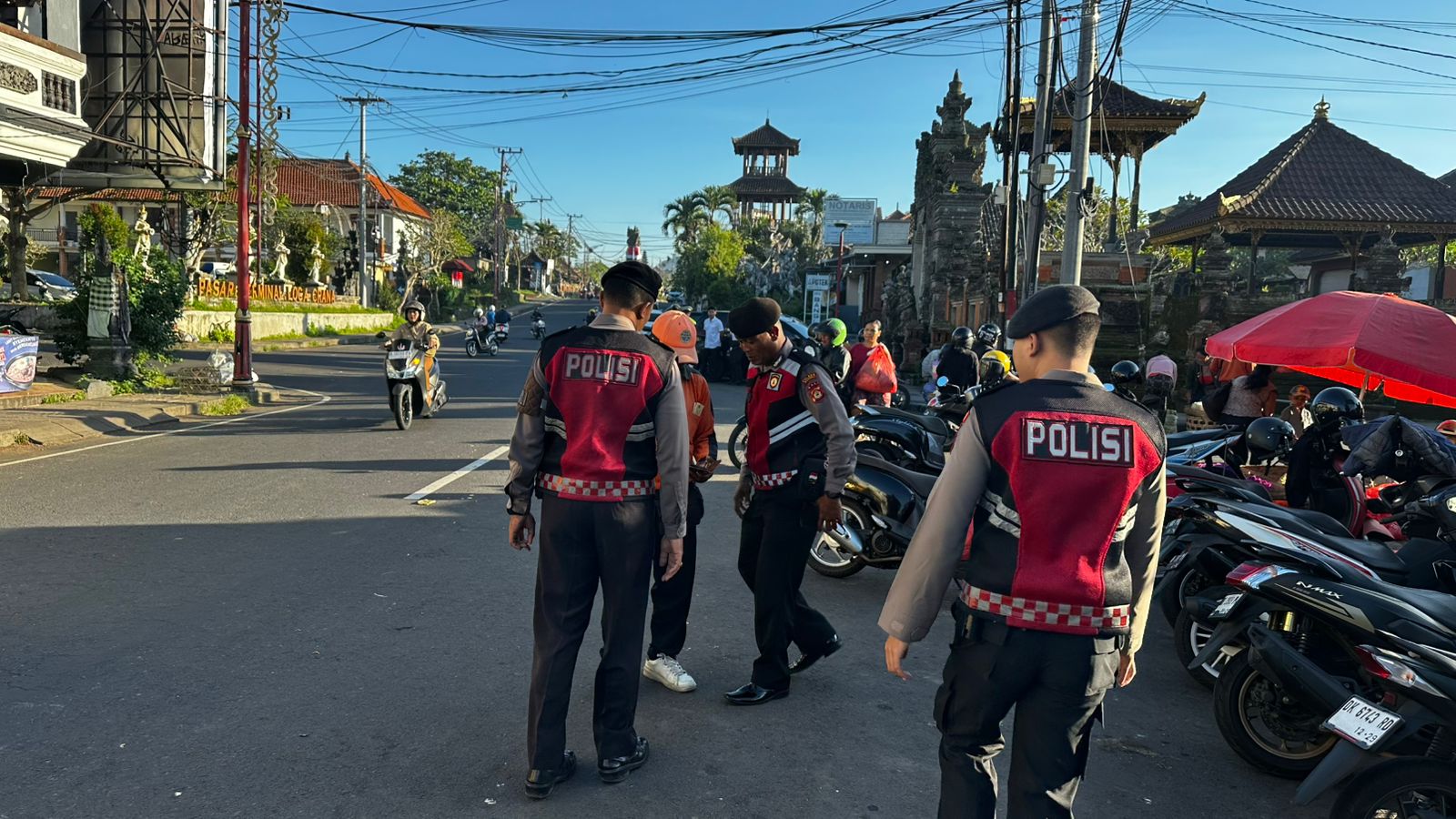 PERKECIL RUANG GERAK AKSI CURANMOR DIWILKUM BANGLI PERSONIL SAMAPTA POLRES BANGLI SAMBANGI TUKANG PARKIR