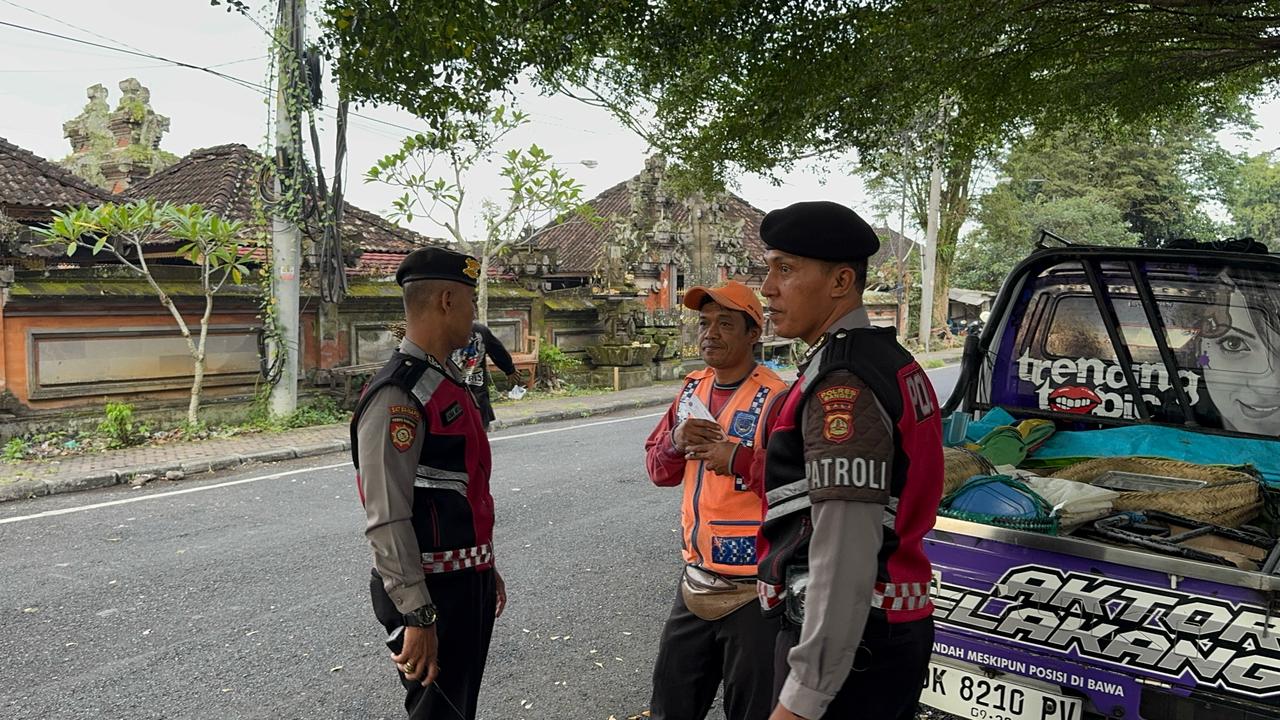 PERKECIL RUANG GERAK AKSI CURANMOR DIWILKUM BANGLI PERSONIL SAMAPTA POLRES BANGLI SAMBANGI TUKANG PARKIR