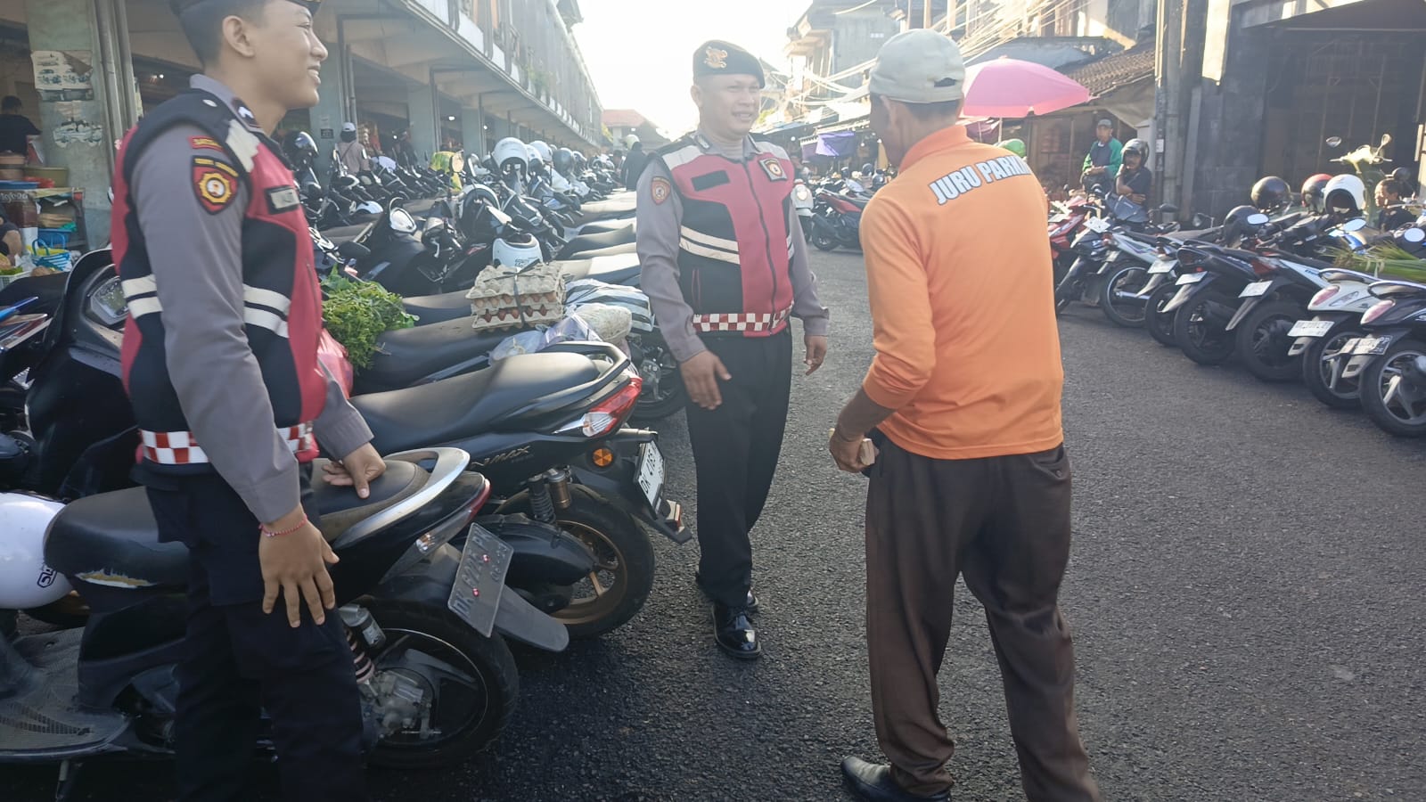 PERKECIL RUANG GERAK AKSI CURANMOR DIWILKUM BANGLI PERSONIL SAMAPTA POLRES BANGLI SAMBANGI TUKANG PARKIR