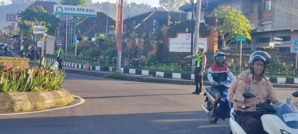 Seperti halnya hari ini Jumat, 10/4/2026, pukul 06.30 Wita, Personil Polsek Bangli dipimpin Kapolsek Kompol I Gusti Made Sudarma Putra, S.Sos., S.H.,M.A.P., didampingi Padal masing - masing Pos, melaksanakan pengaturan disetiap persimpangan dan bantu menyebrangkan masyarakat guna ciptakan arus lalu lintas aman, tertib dan lancar serta menghindari terjadinya kemacetan maupun laka lantas.
