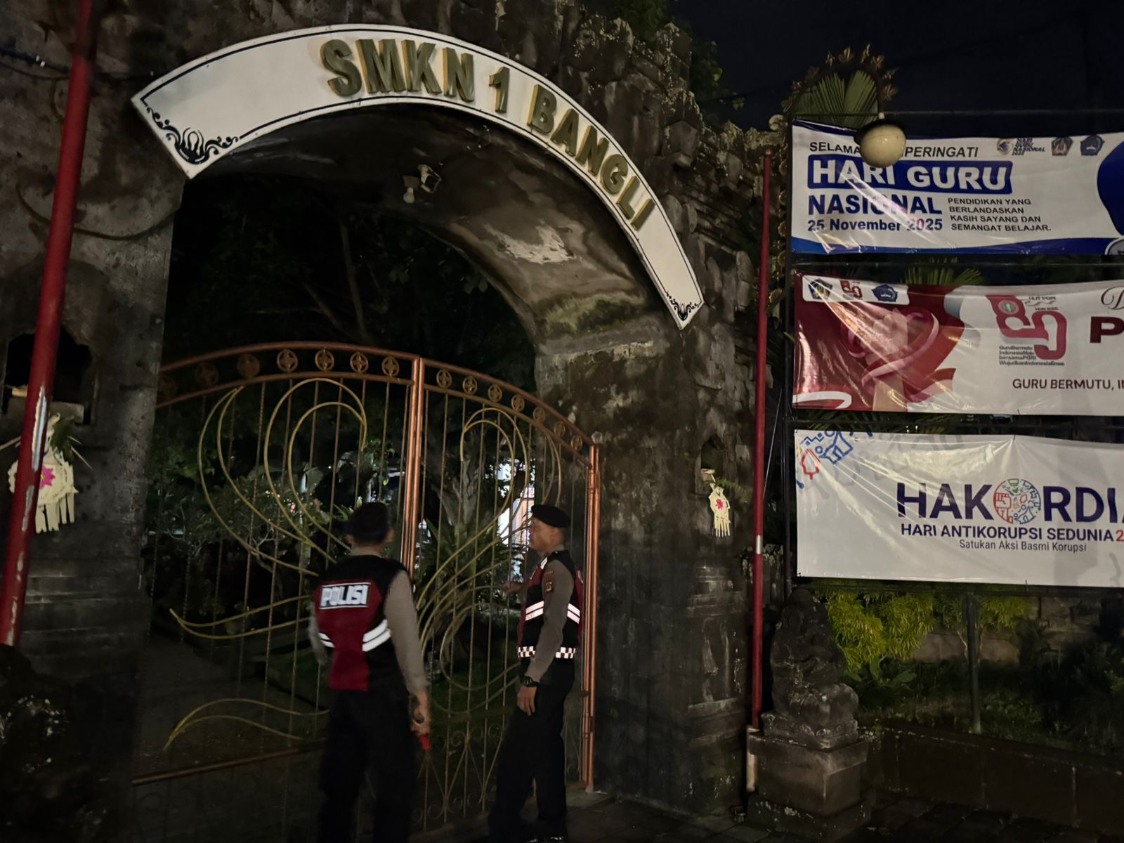 Satuan Samapta Polres Bangli Laksanakan Patroli Pada Malam Hari di SMK N 1 Bangli, Kel. Kawan, Kec. Bangli, Untuk Antisipasi Gangguan Kamtibmas.