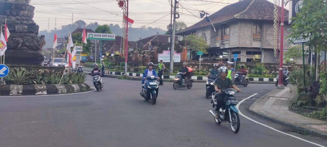 Menjaga Situasi Tetap Kondusif, Personil Polsek Bangli Laksanakan Pengaturan Arus Lalulintas