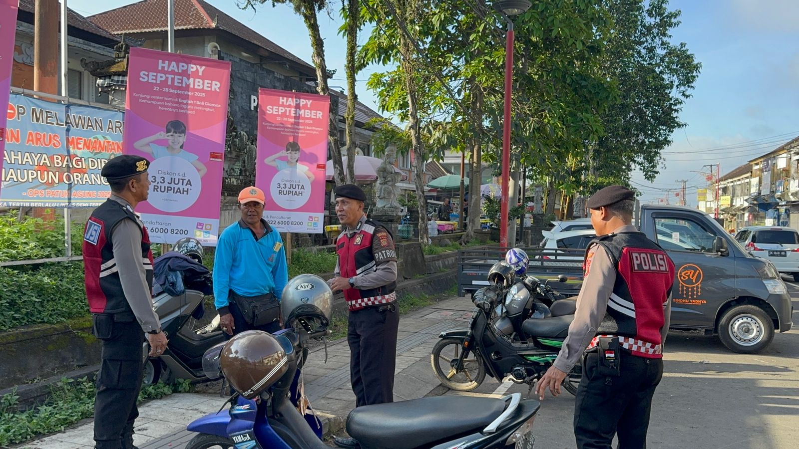 PERKECIL RUANG GERAK AKSI CURANMOR DIWILKUM BANGLI PERSONIL SAMAPTA POLRES BANGLI SAMBANGI TUKANG PARKIR