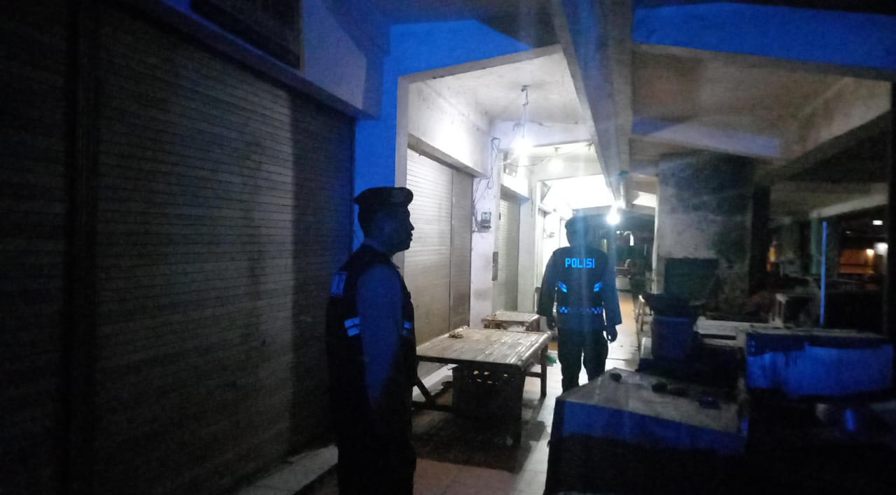 Antisipasi Gangguan Kamtibmas Pada Malam Hari, Personil Samapta Polres Bangli Lakukan Patroli Malam di Areal Pertokoan Pasar Kidul Bangli.