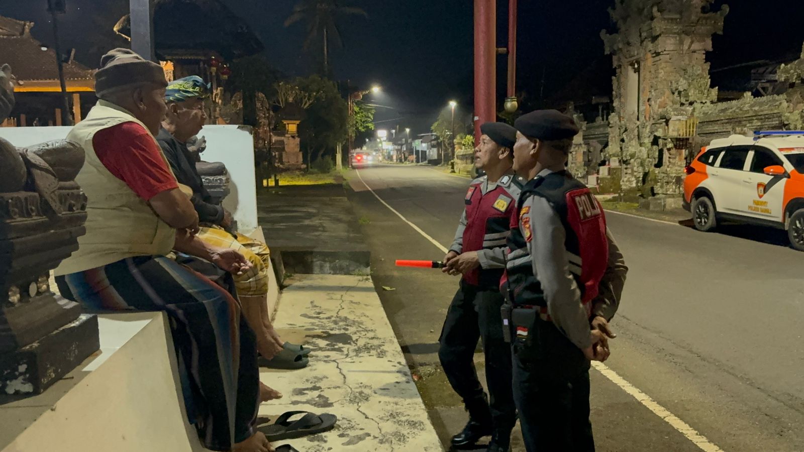 Sat Samapta Melaksanakan Patroli Dialogis Memberikan Himbauan Kamtibmas Kepada Krama Pekemitan Di Pura Dalem Penunggekan, Bangli.