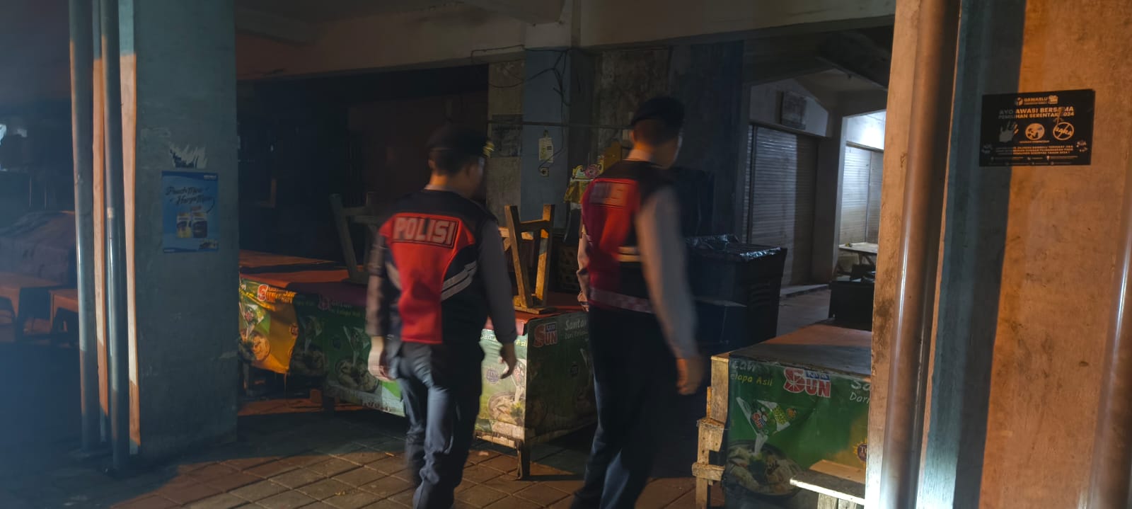 Antisipasi Gangguan Kamtibmas Pada Malam Hari, Personil Samapta Polres Bangli Lakukan Patroli Malam di Areal Pertokoan Pasar Kidul Bangli.
