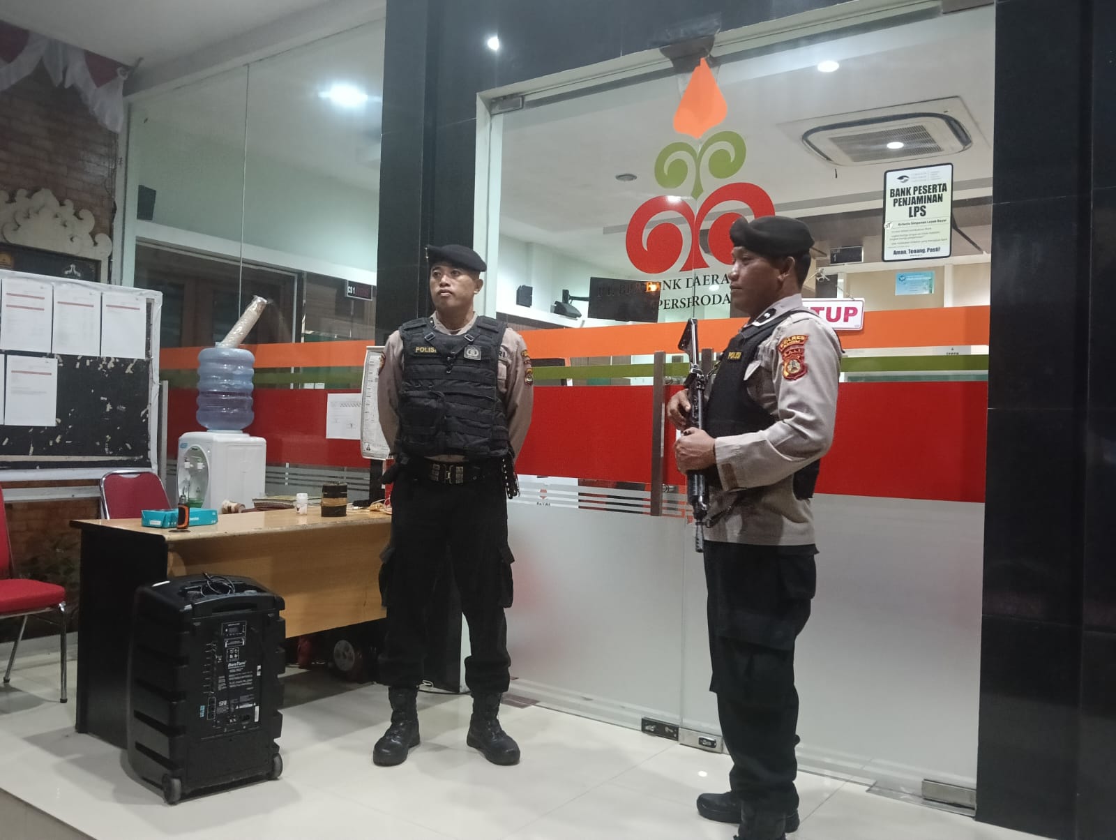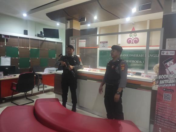 Unit Pam Obvit Sat Samapta Res Bangli Melaksanakan Pengamanan di Obyek Vital Bank BPD Bali Cabang Bangli.