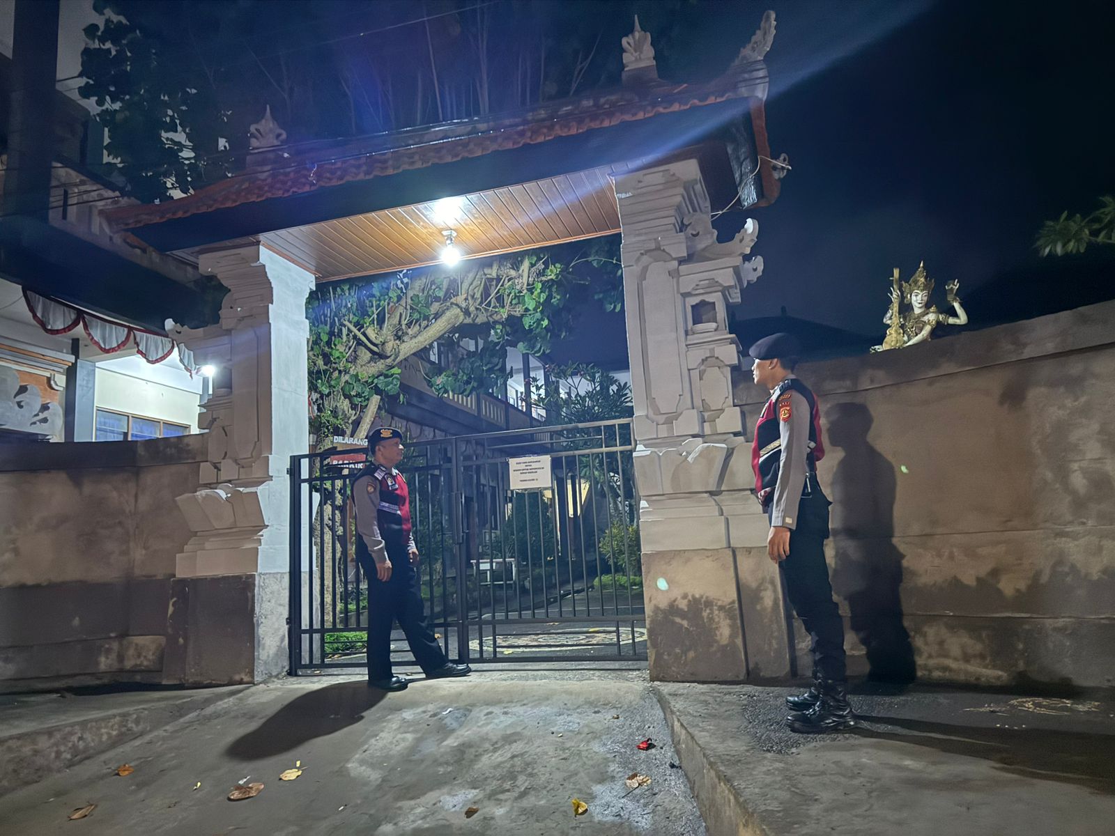 Menjaga Situasi Tetap Kondusi Pada Malam Hari, Sat Samapta Polres Bangli Sambangi Tempat Suci Pura Dalem Penunggekan, Kec. Bangli