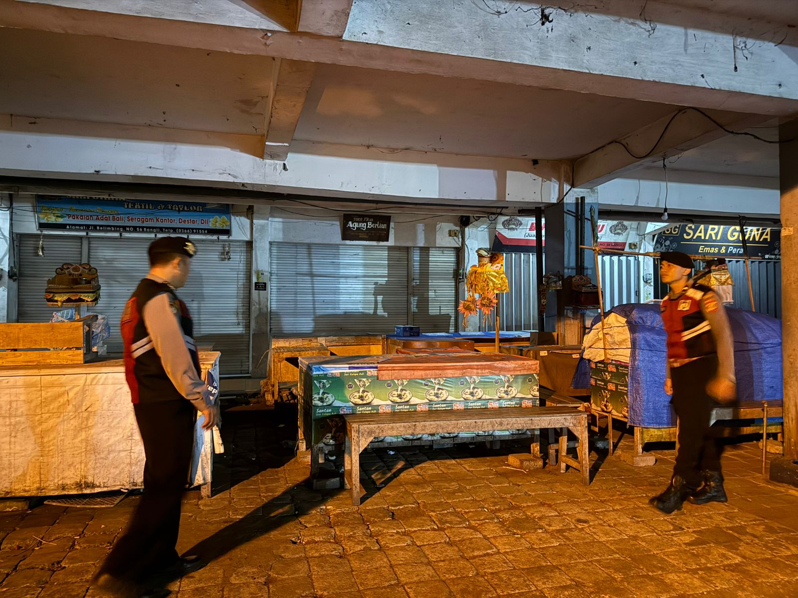 Antisipasi Gangguan Kamtibmas Pada Malam Hari, Personil Samapta Polres Bangli Lakukan Patroli Malam di Areal Pertokoan Pasar Kidul Bangli.