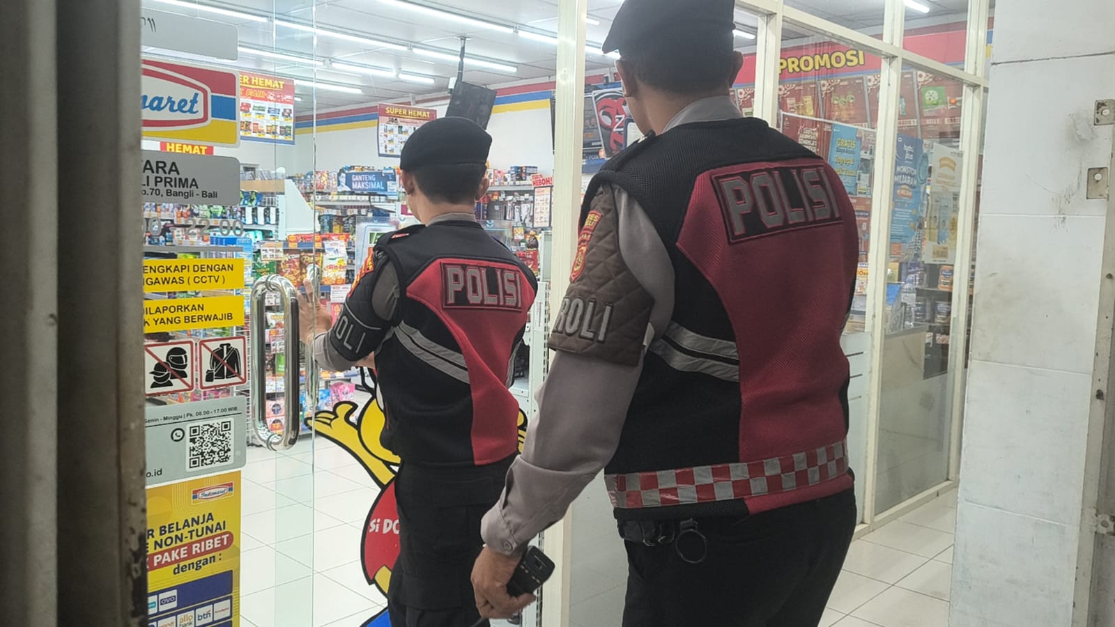 Antisipasi Gangguan Kamtibmas Pada Malam Hari, Personil Samapta Polres Bangli Lakukan Patroli Malam di Areal Pertokoan Pasar Kidul Bangli.