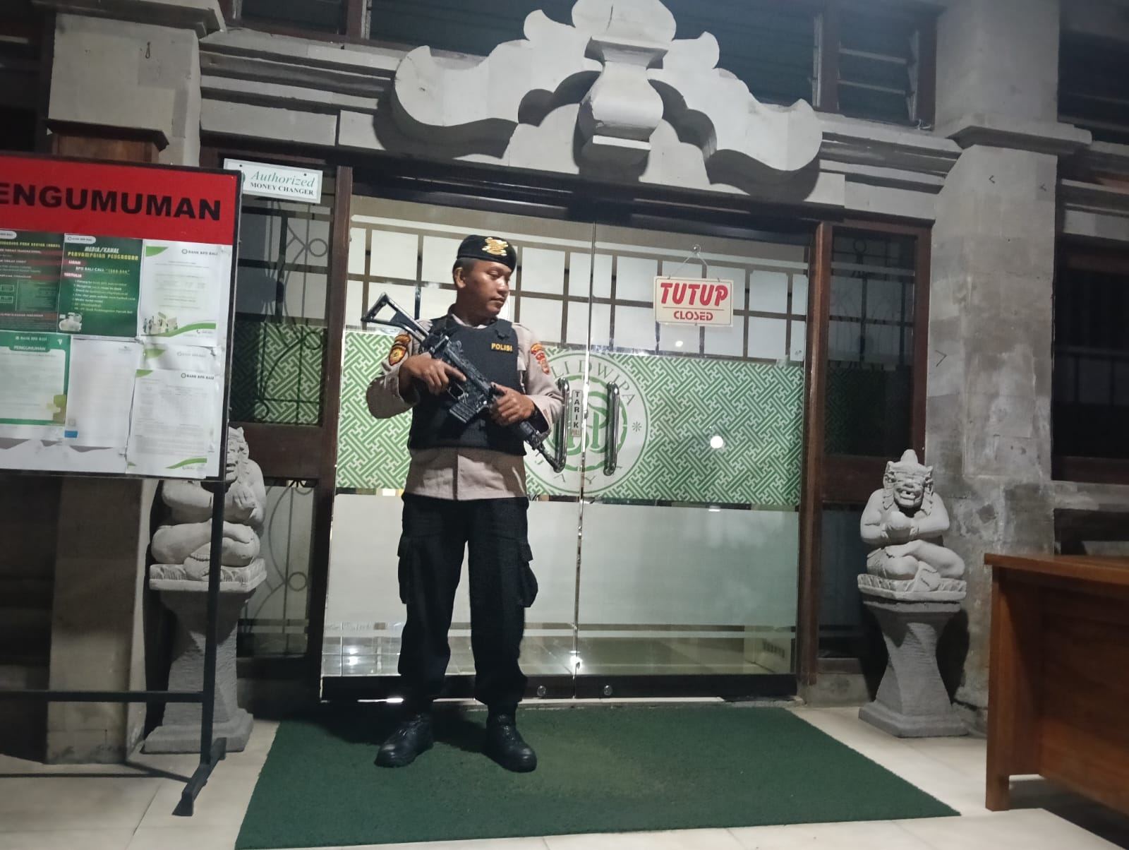 Unit Pam Obvit Sat Samapta Res Bangli Melaksanakan Pengamanan di Obyek Vital BPR Bank Daerah Bangli.