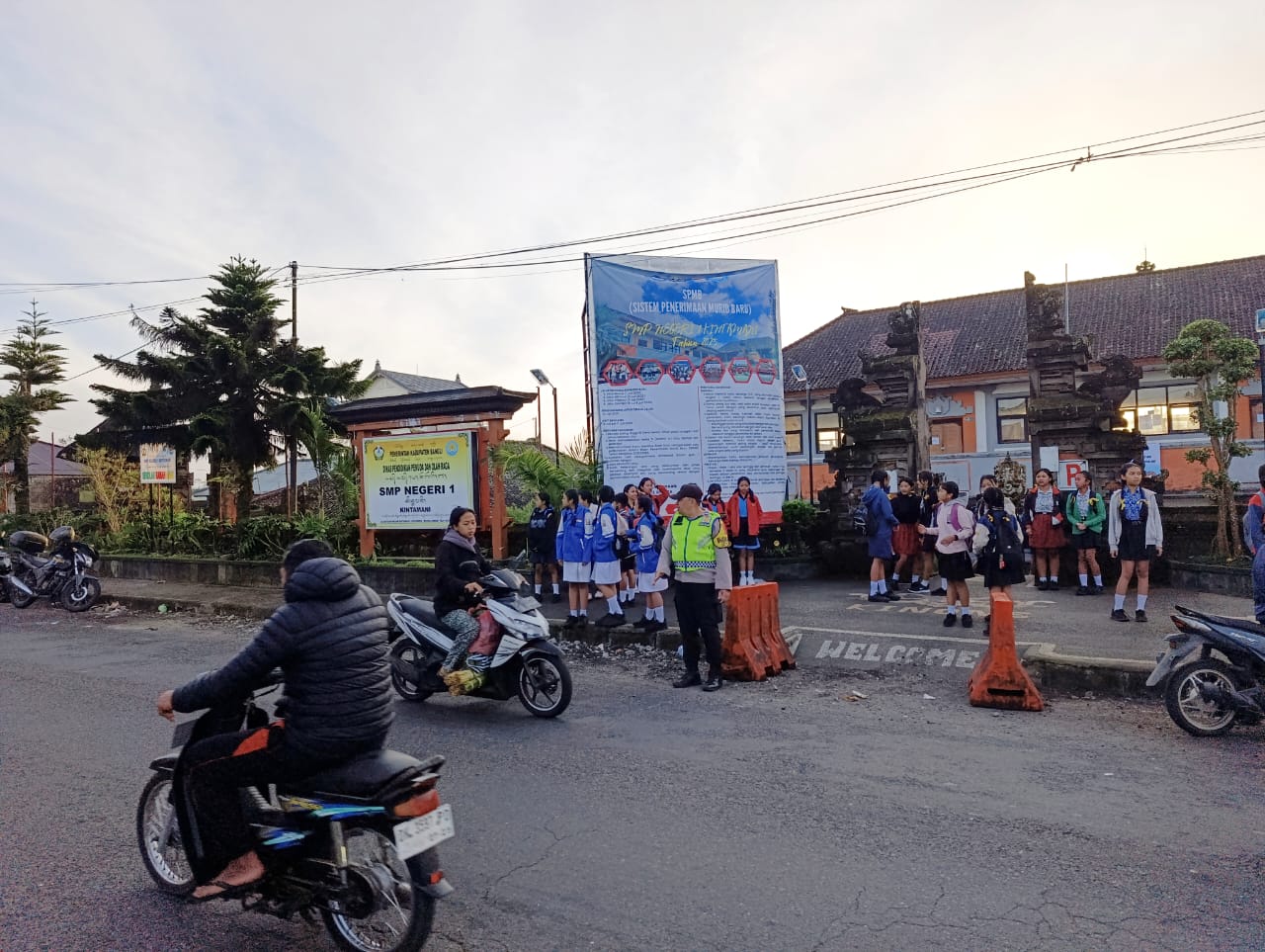 Beri Pelayanam Kepada Masyarakat di Pagi Hari, Personil Polsek Bangli Laksanakan Pengaturan Arus Lalulintas