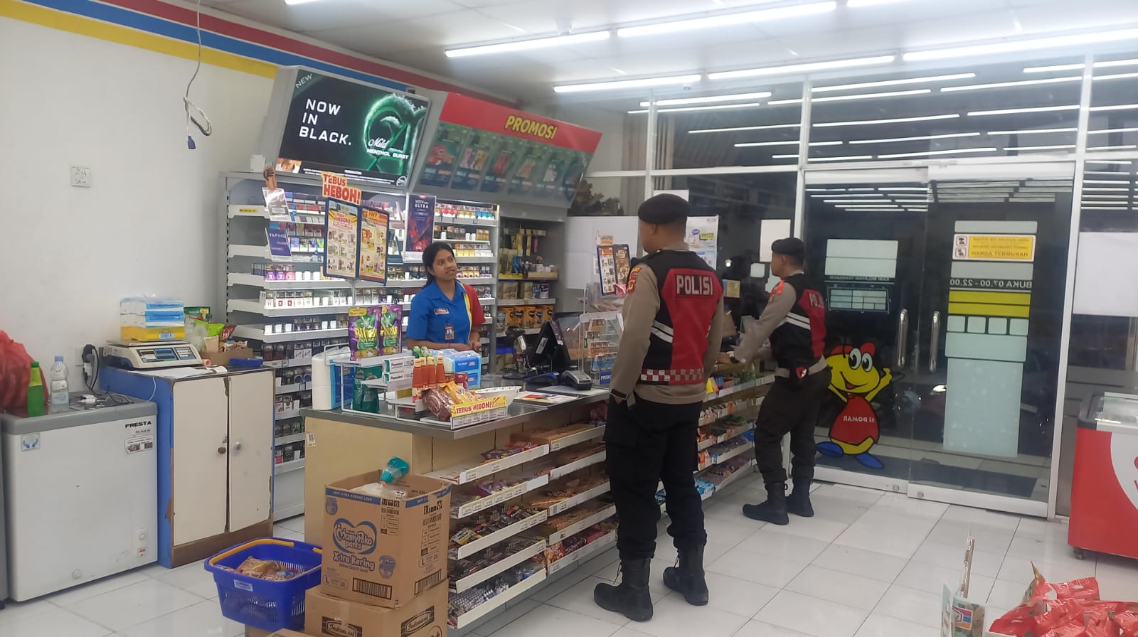 Sat Samapta Polres Bangli Secara Rutin Laksanakan Patroli Dialogis Tentang Kamtibmas Kepada Karyawan Pertokoan Modern di wilkum Polres Bangli