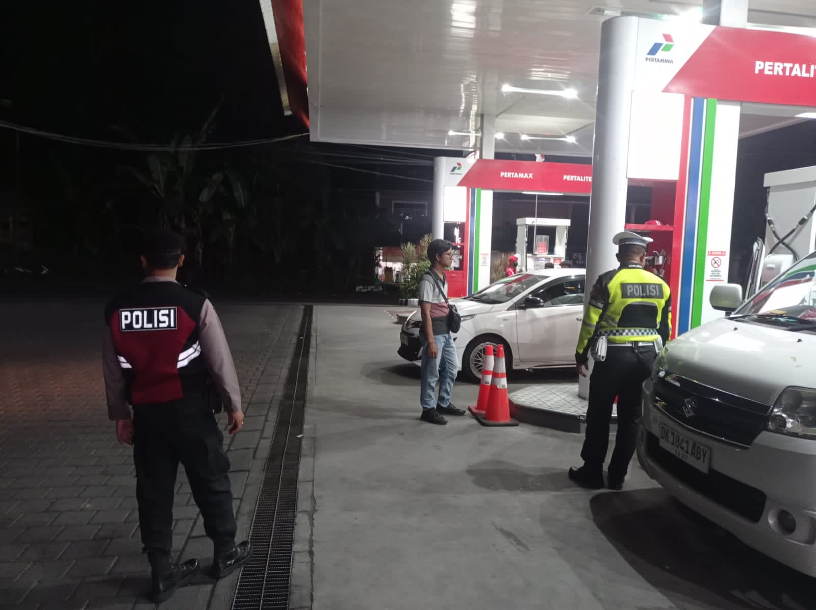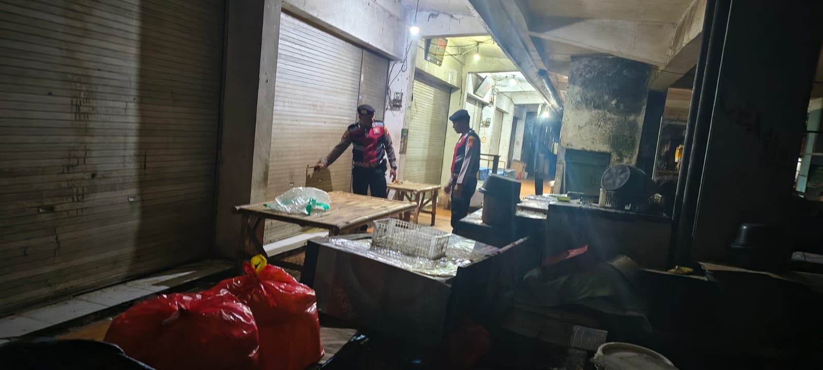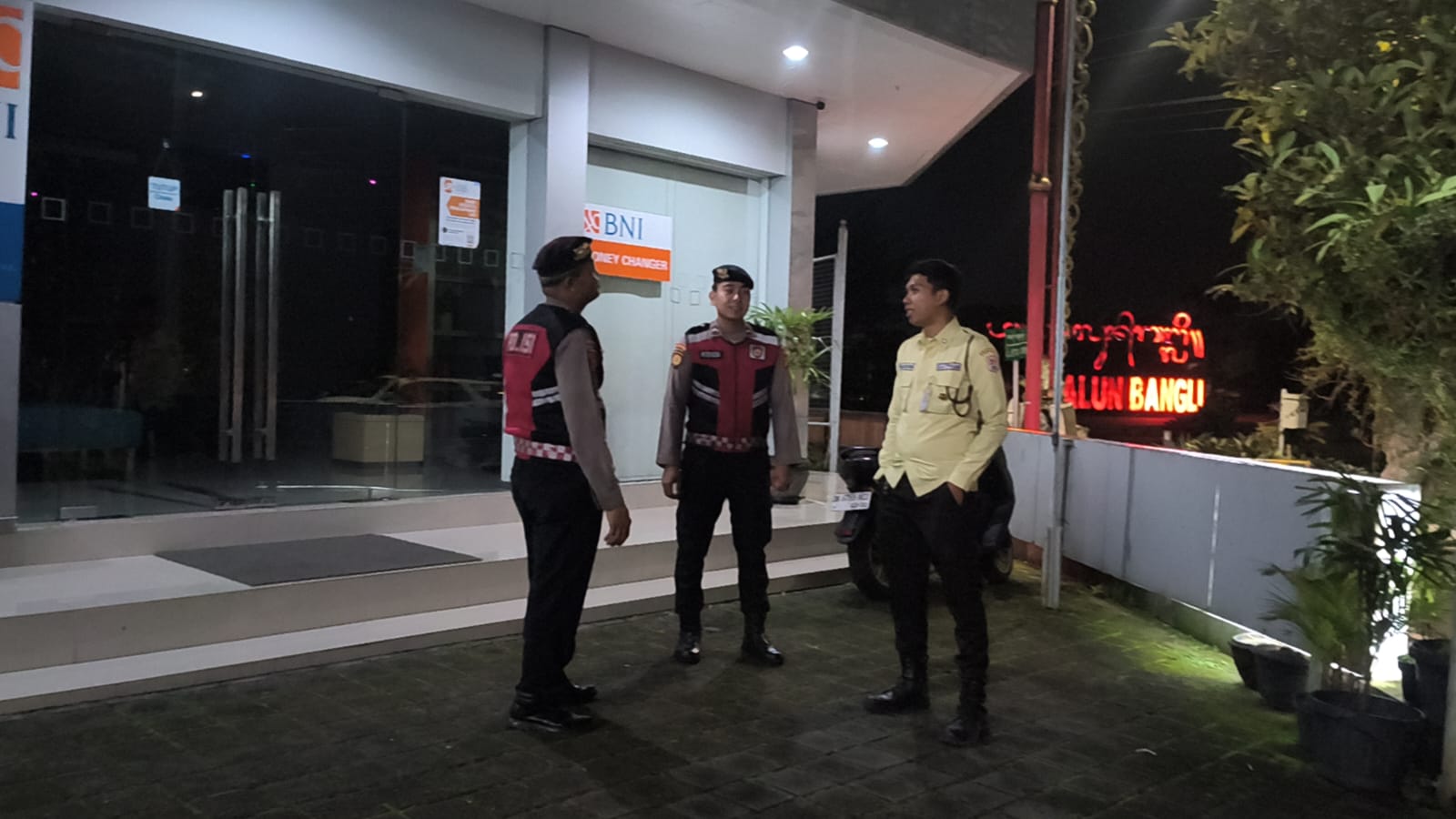 Antisipasi Gangguan Kamtibmas Pada Malam Hari, Personil Samapta Polres Bangli Lakukan Patroli Malam di Areal Pertokoan Pasar Kidul Bangli.
