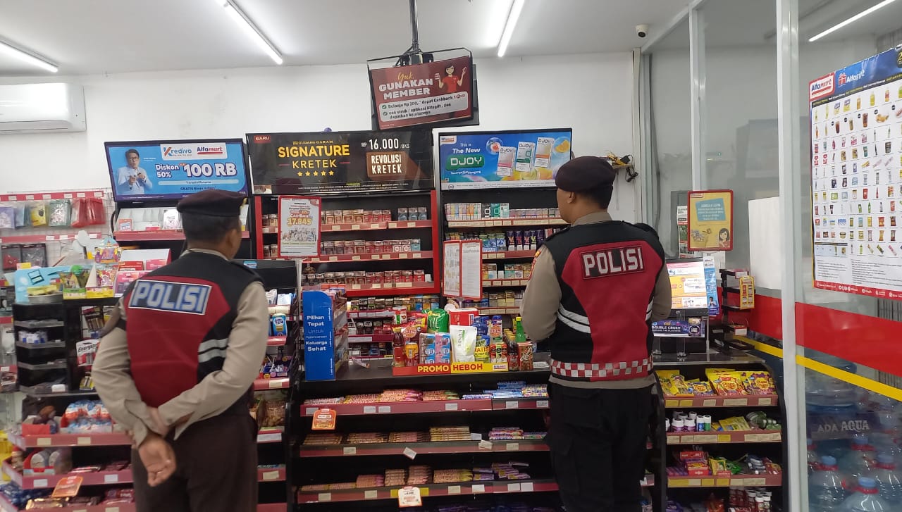 Antisipasi Gangguan Kamtibmas Pada Malam Hari, Personil Samapta Polres Bangli Lakukan Patroli Malam di Areal Pertokoan Pasar Kidul Bangli.