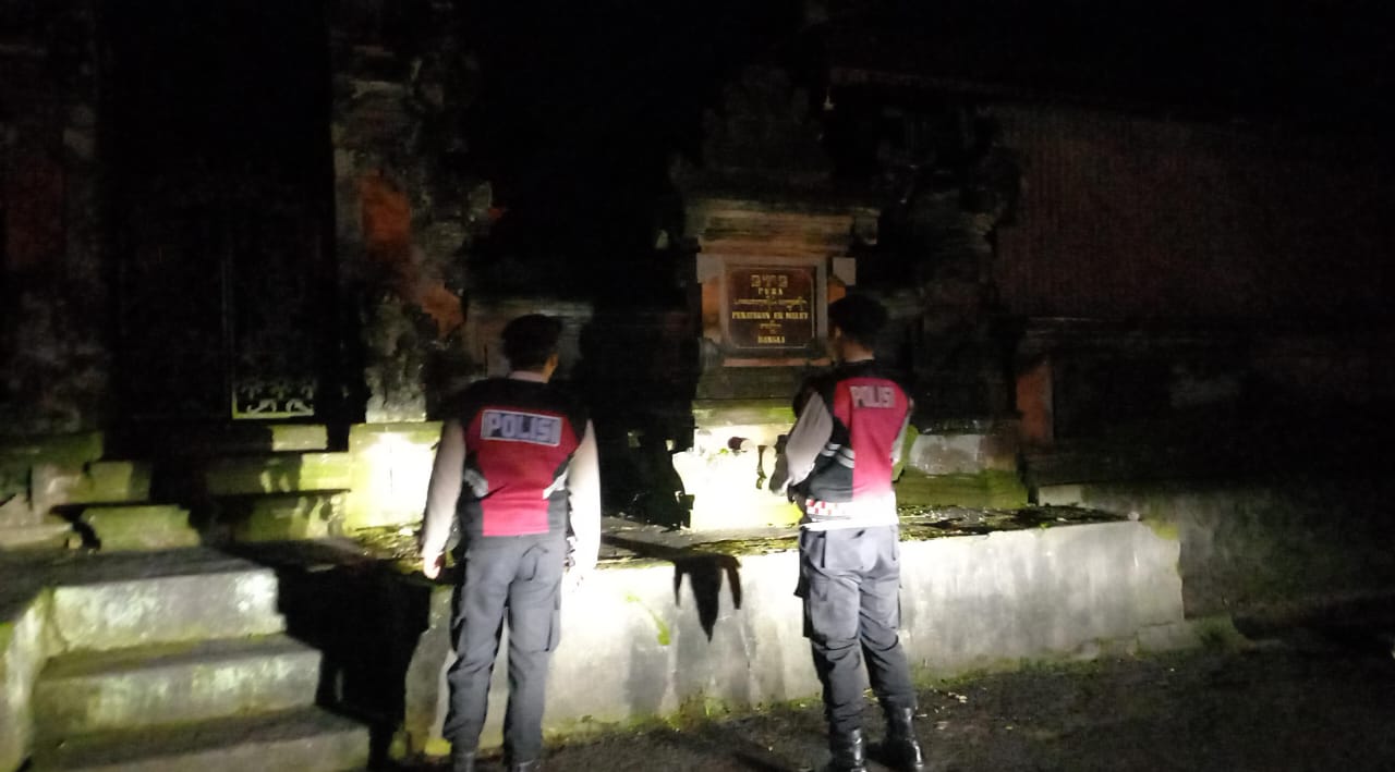 Menjaga Situasi Tetap Kondusi Pada Malam Hari, Sat Samapta Polres Bangli Sambangi Tempat Suci Pura Penataran Er Malet, Kel. Kawan, Kec. Bangli
