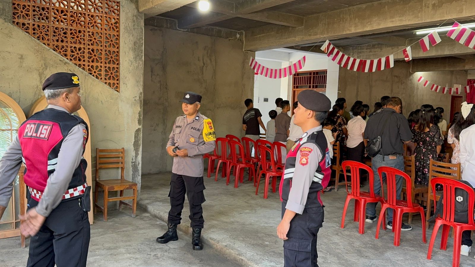 Personil Polsek Bergabung Dengan Polres Bangli Laksanakan pengamanan Kegiatan Ibadah Minggu di Gereja Marga Rahayu