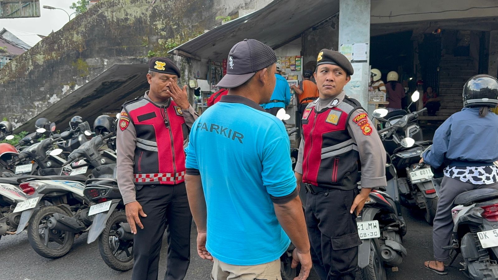 PERKECIL RUANG GERAK AKSI CURANMOR DIWILKUM BANGLI PERSONIL SAMAPTA POLRES BANGLI SAMBANGI TUKANG PARKIR