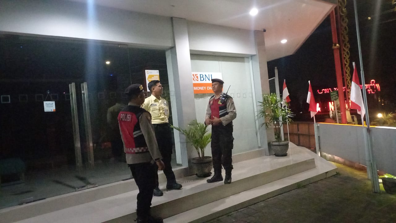 Sat Samapta Res Bangli Laksanakan Patroli Dialogis Dan Himbauan Kamtibmas Kepada Satpam Obyek Vital Bank BNI Cabang Bangli.