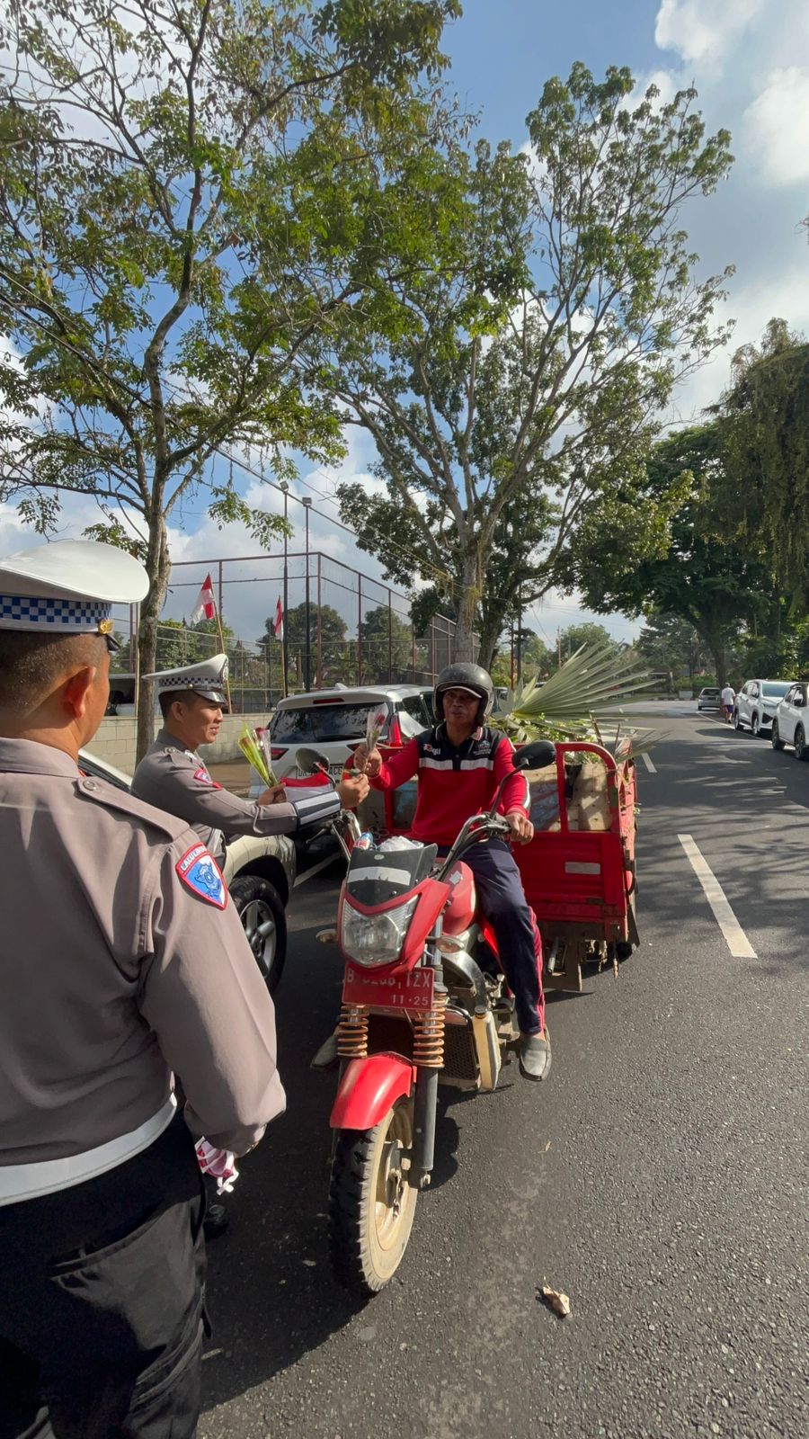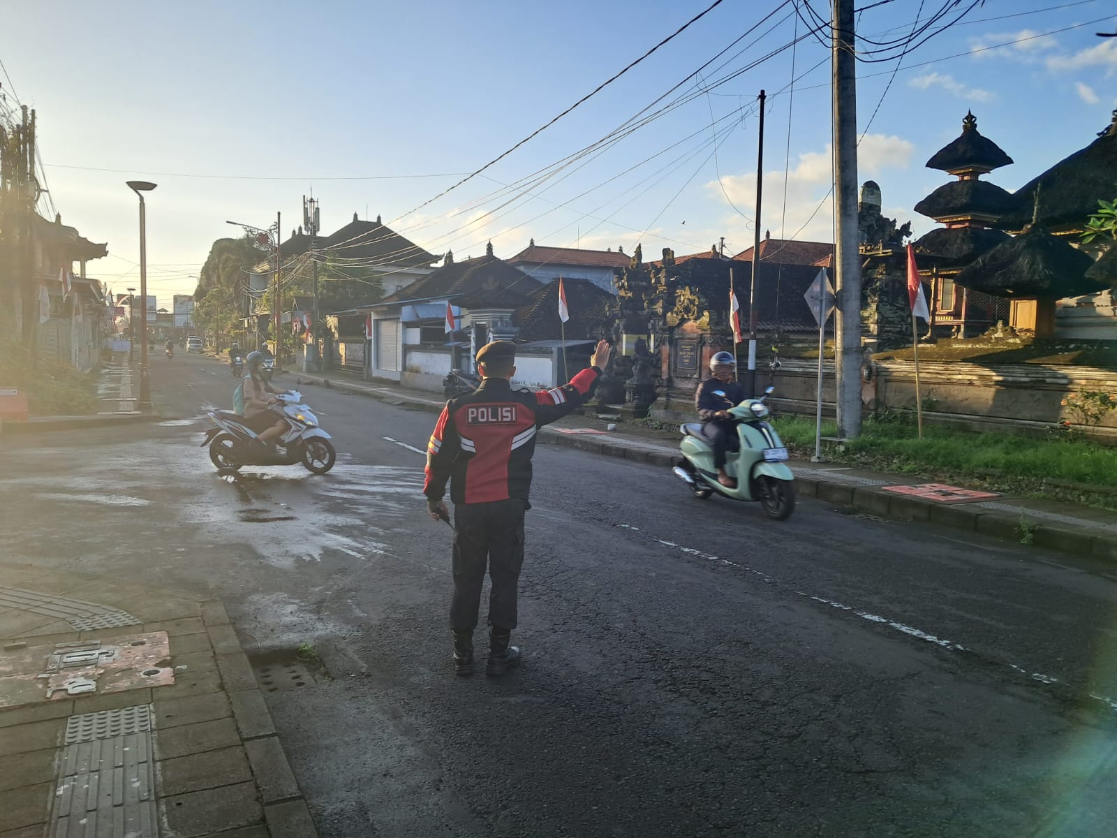 Sat Lantas Polres Bangli Bagikan Bendera Merah Putih guna Bangun Kesadaran Nasionalisme.