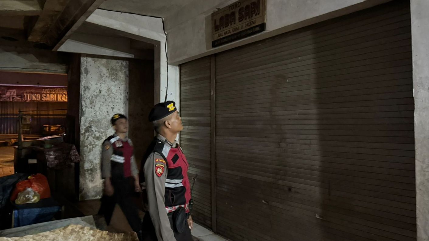 Antisipasi Gangguan Kamtibmas Pada Malam Hari, Personil Samapta Polres Bangli Lakukan Patroli Malam di Areal Pertokoan Pasar Kidul Bangli.
