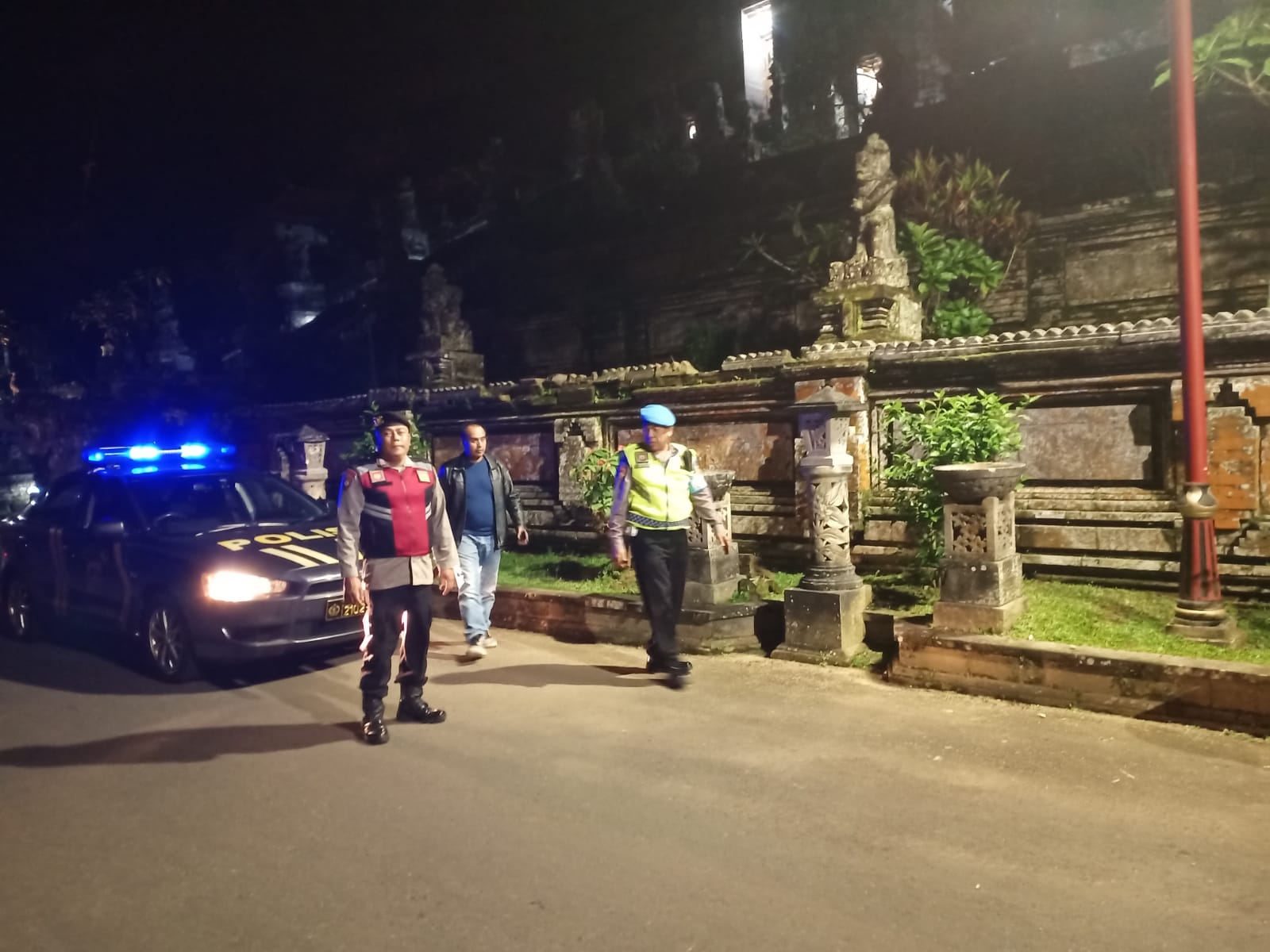 Menjaga Situasi Tetap Kondusi Pada Malam Hari, Sat Samapta Polres Bangli Sambangi Tempat Suci Pura Kehen, Kel. Cempaga, Kec. Bangli