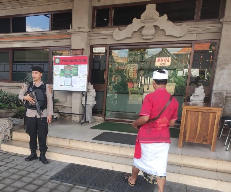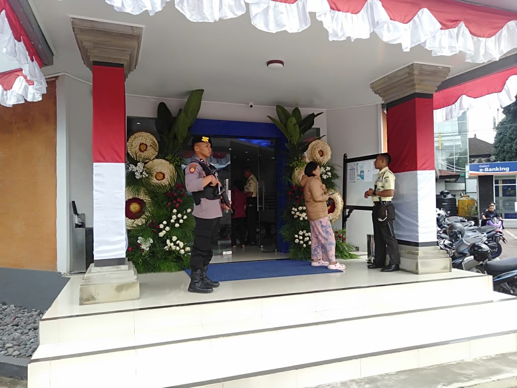 Unit Pam Obvit Sat Samapta Res Bangli Melaksanakan Pengamanan di Obyek Vital Bank BPD Bali Cabang Bangli.