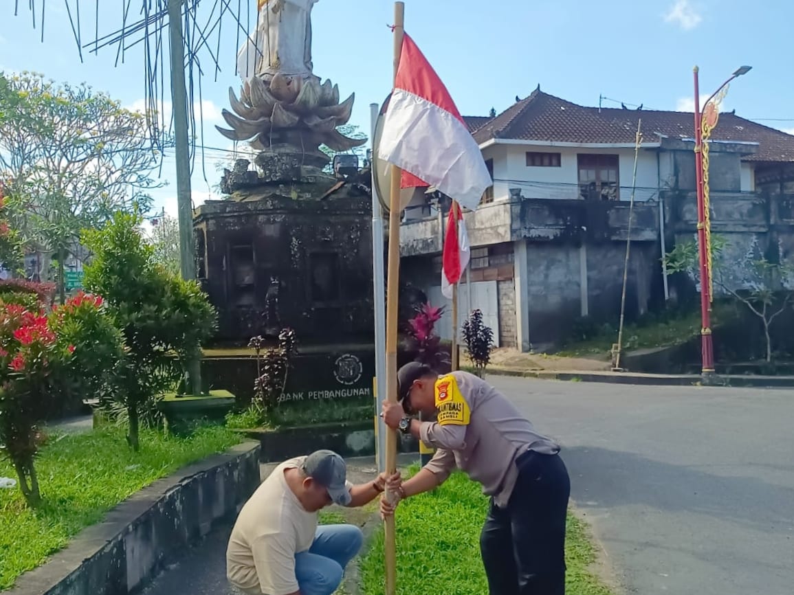 Tumbuhkan Rasa Nasionalisme, Polsek Tembuku Bagikan Bendera Merah Putih jelang Hut RI ke-80