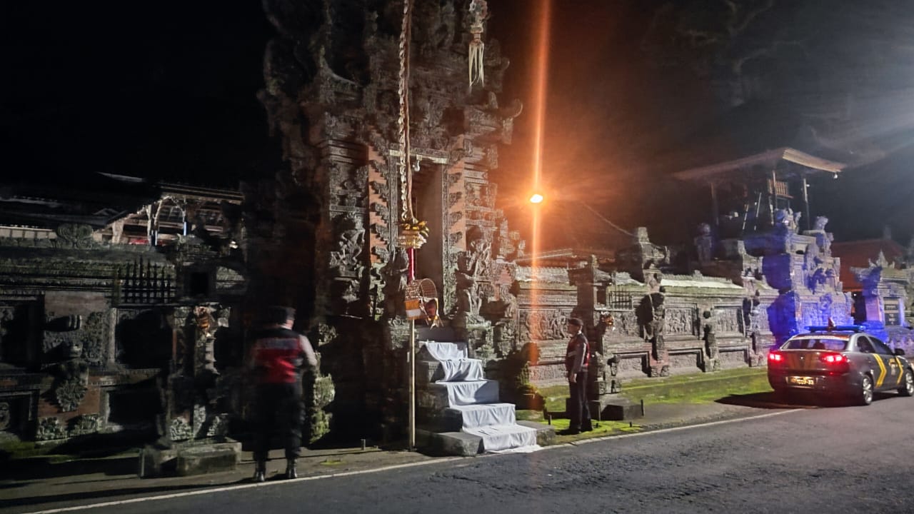 Menjaga Situasi Tetap Kondusi Pada Malam Hari, Sat Samapta Polres Bangli Sambangi Tempat Suci, Pura penataran puseh bale agung