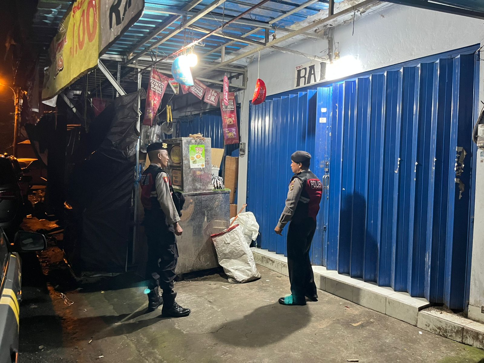 Antisipasi Gangguan Kamtibmas Pada Malam Hari, Personil Samapta Polres Bangli Lakukan Patroli Malam di Areal Pertokoan Pasar Kidul Bangli.