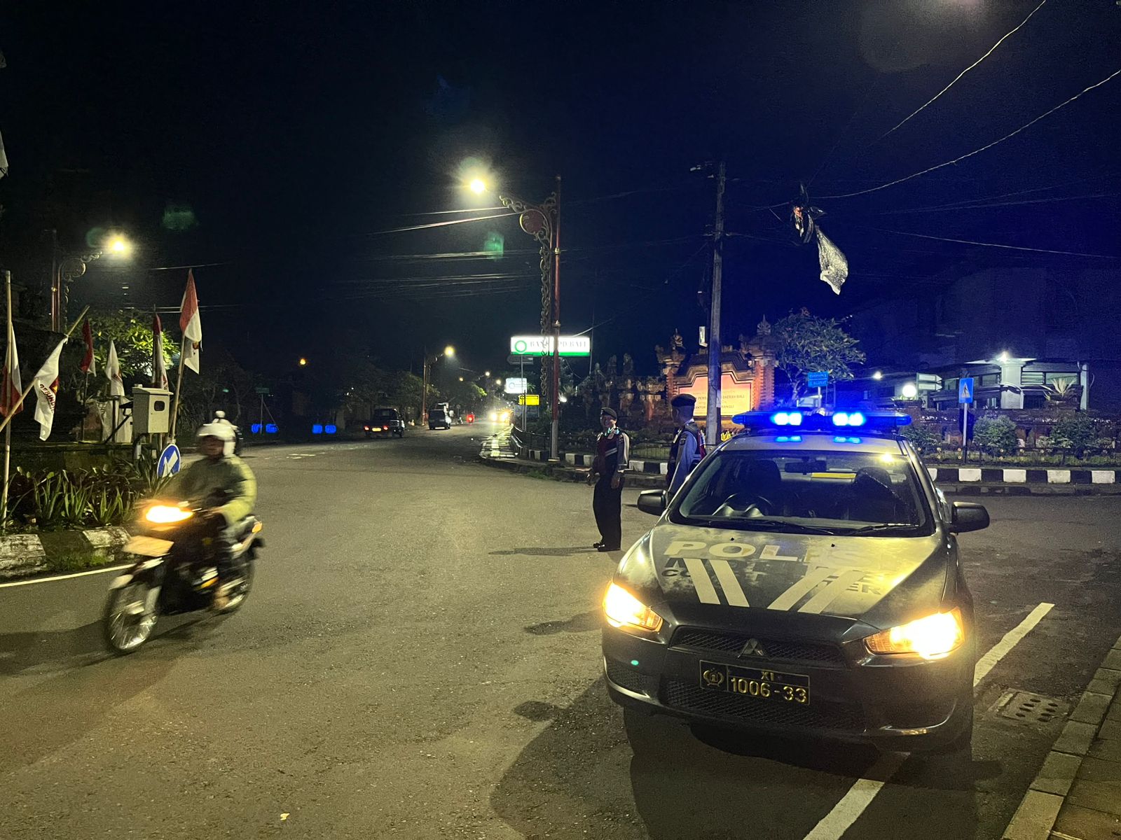 Sat Samapta Laksanakan Gatur dan Pergelaran Blue Light Randis R4 di Pusat Keramaian Malam Di Kota Bangli Demi Kenyamanan Dan Kelancaran Arus Lalu lintas Pada Malam.
