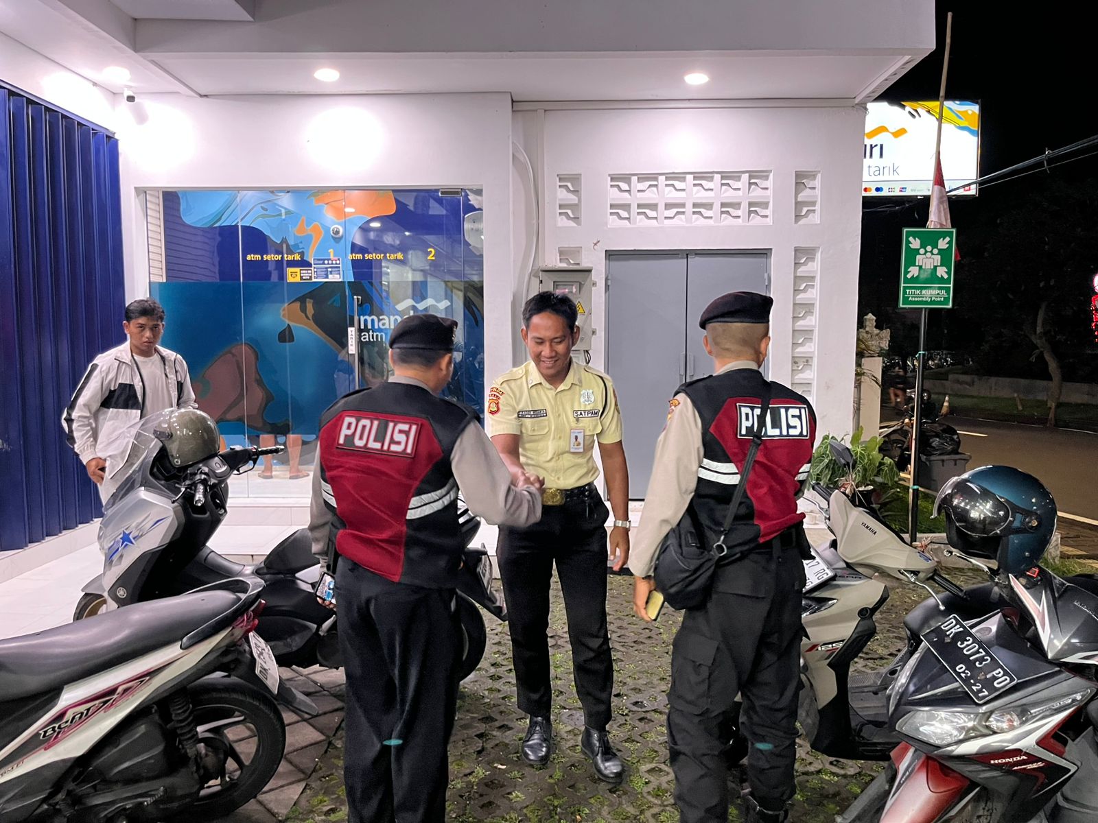 Sat Samapta Res Bangli Laksanakan Patroli Dialogis Dan Himbauan Kamtibmas Kepada Satpam Obyek Vital Bank Mandiri Cabang Bangli.