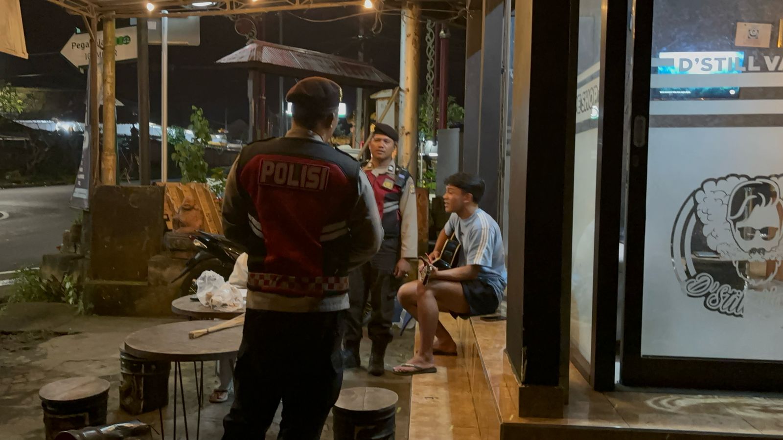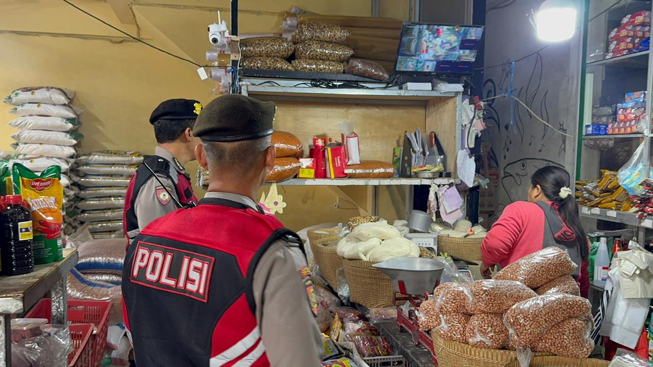 Antisipasi Gangguan Kamtibmas Pada Malam Hari, Personil Samapta Polres Bangli Lakukan Patroli Malam di Areal Pertokoan Pasar Kidul Bangli.