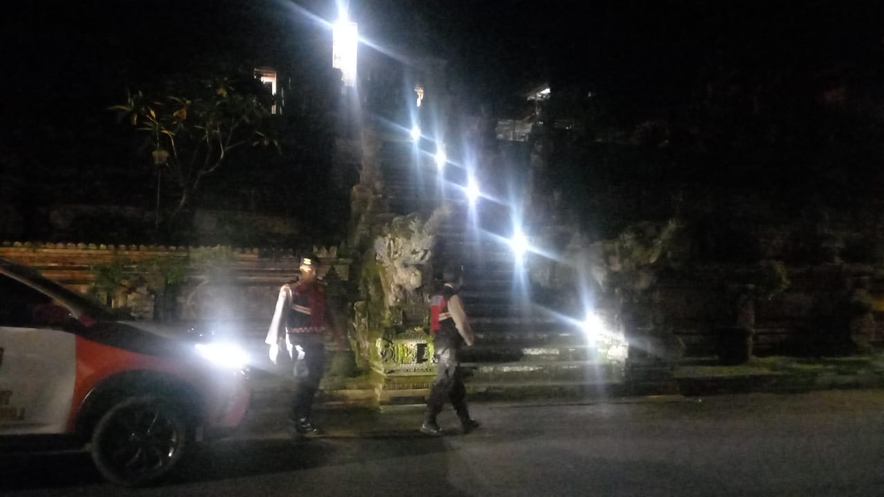 Menjaga Situasi Tetap Kondusi Pada Malam Hari, Sat Samapta Polres Bangli Sambangi Tempat Suci Pura Kehen, Kel. Cempaga, Kec. Bangli