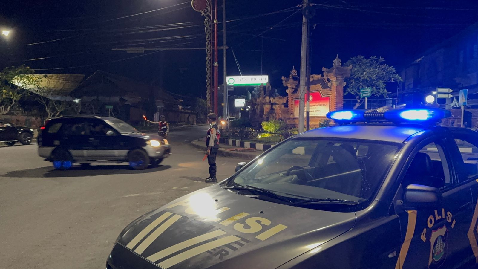 Sat Samapta Laksanakan Gatur dan Pergelaran Blue Light Randis R4 di Pusat Keramaian Malam Di Kota Bangli Demi Kenyamanan Dan Kelancaran Arus Lalu lintas Pada Malam.