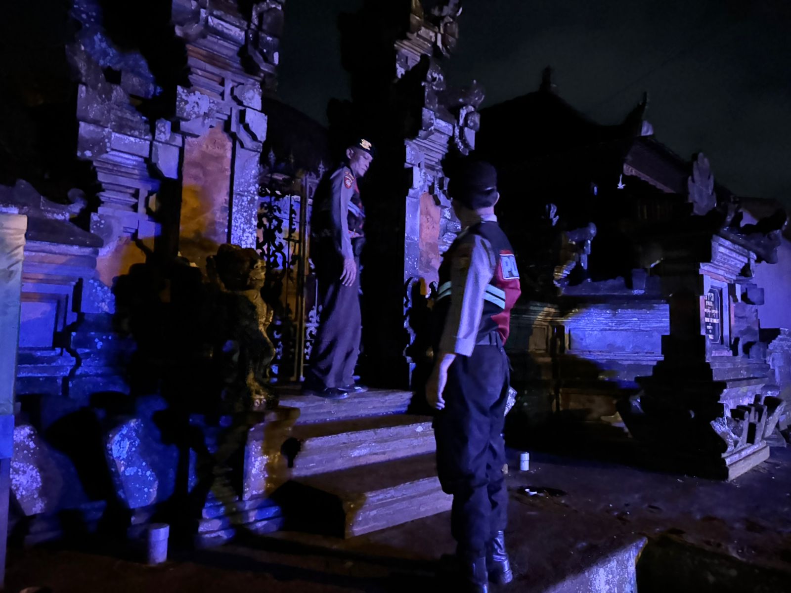 Menjaga Situasi Tetap Kondusi Pada Malam Hari, Sat Samapta Polres Bangli Sambangi Tempat Suci Pura Penataran Er Malet, Kel. Kawan, Kec. Bangli