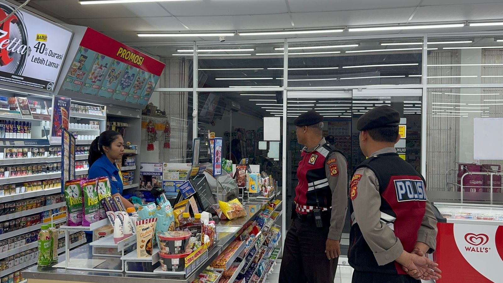 Sat Samapta Polres Bangli Secara Rutin Laksanakan Patroli Dialogis Tentang Kamtibmas Kepada Karyawan Pertokoan Modern di wilkum Polres Bangli