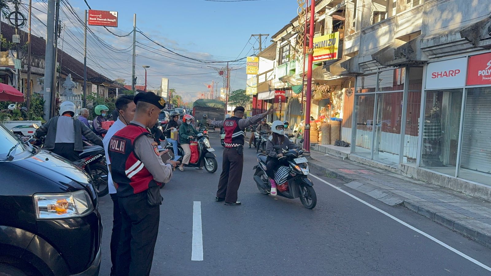 Jaga Situasi Tetap Mancarli Personil Polsek Bangli Laksanakan Pengaturan Arus Lalulintas