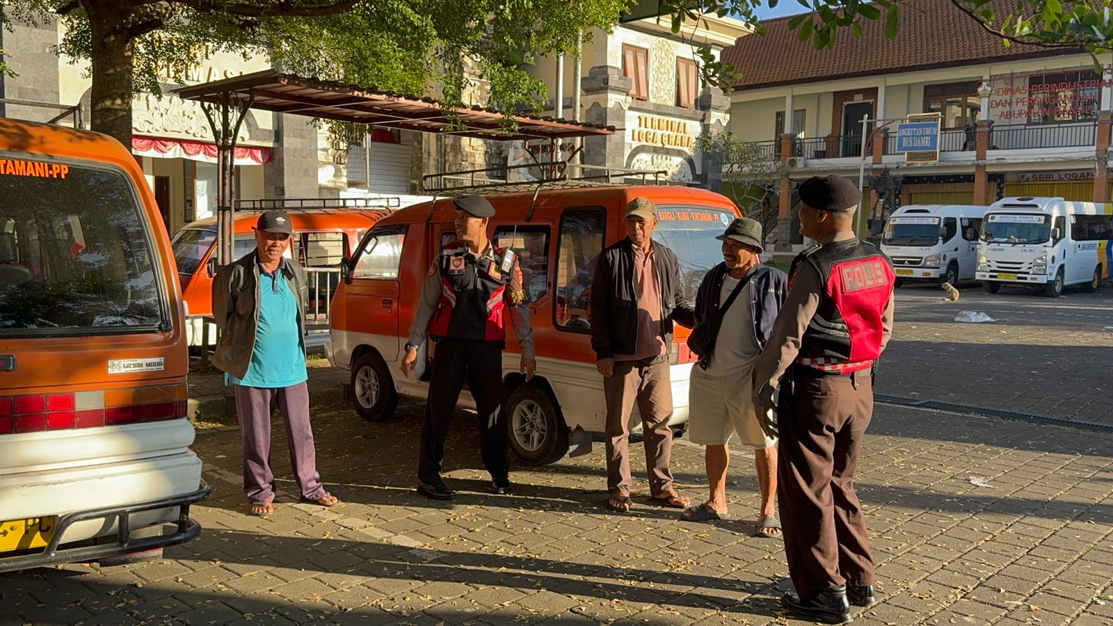 PERKECIL RUANG GERAK AKSI CURANMOR DIWILKUM BANGLI PERSONIL SAMAPTA POLRES BANGLI SAMBANGI TUKANG PARKIR