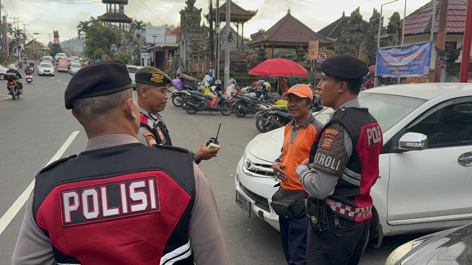 PERKECIL RUANG GERAK AKSI CURANMOR DIWILKUM BANGLI PERSONIL SAMAPTA POLRES BANGLI SAMBANGI TUKANG PARKIR