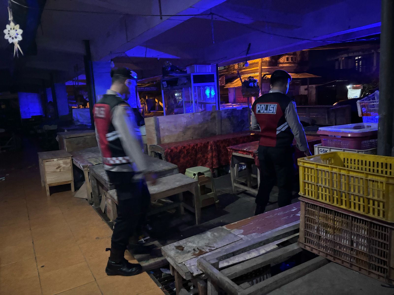Antisipasi Gangguan Kamtibmas Pada Malam Hari, Personil Samapta Polres Bangli Lakukan Patroli Malam di Areal Pertokoan Pasar Kidul Bangli.