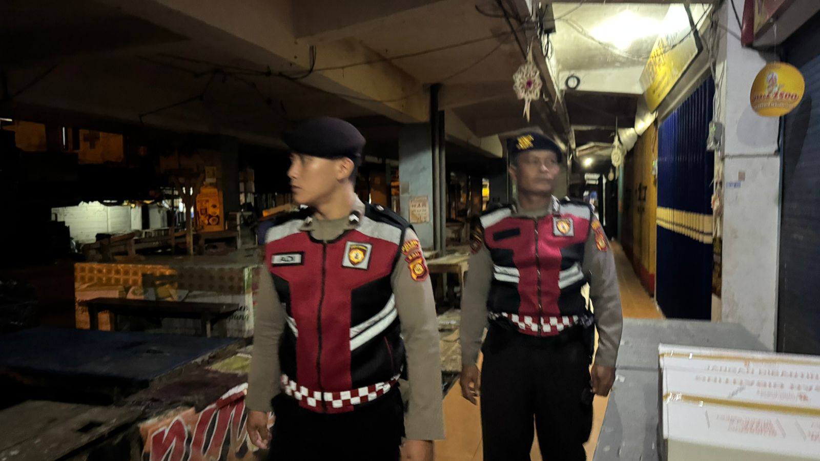 Antisipasi Gangguan Kamtibmas Pada Malam Hari, Personil Samapta Polres Bangli Lakukan Patroli Malam di Areal Pertokoan Pasar Kidul Bangli.