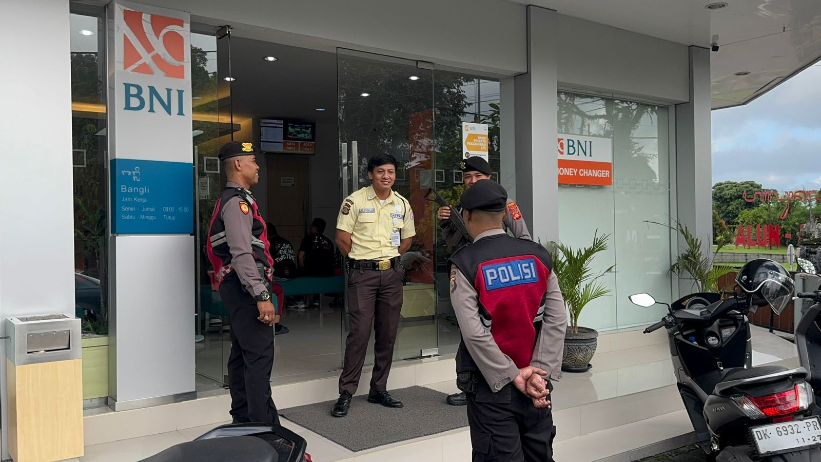Sat Samapta Res Bangli Laksanakan Patroli Dialogis Dan Himbauan Kamtibmas Kepada Satpam Obyek Vital Bank BNI Cabang Bangli.